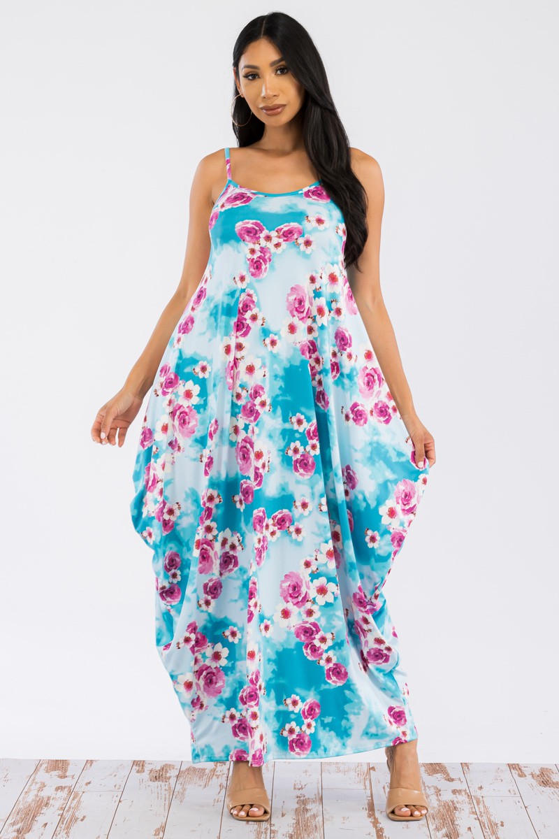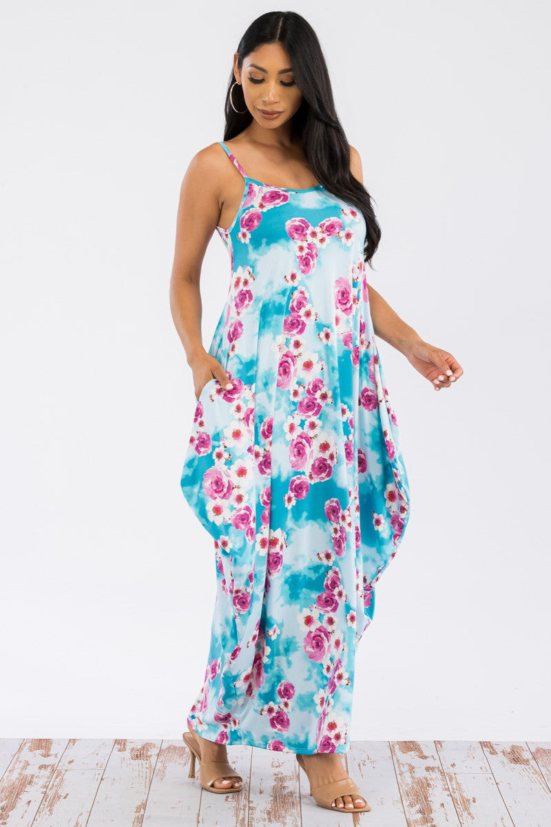 HH645X-FLORES -VESTIDO CAMI MAXI BOLSILLOS