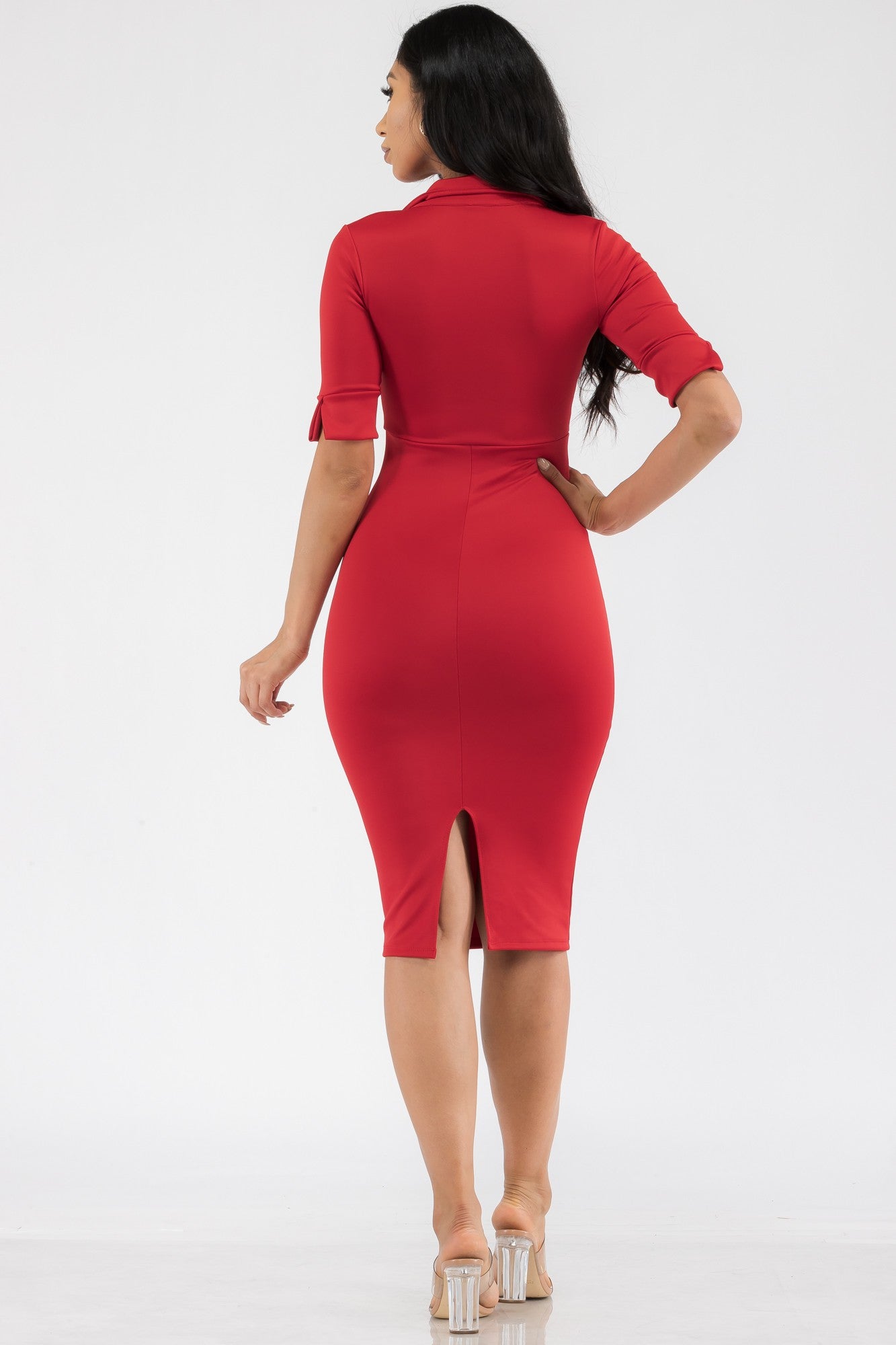 HH714X-SOL - VESTIDO MIDI CON CUELLO