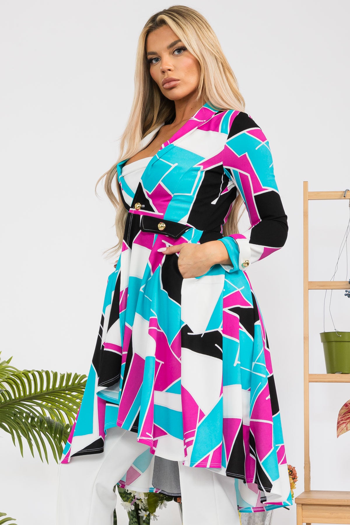 HH744R-ABSTRACT - CREPE KNIT CHAIN BUTTON HI-LO CARDIGAN
