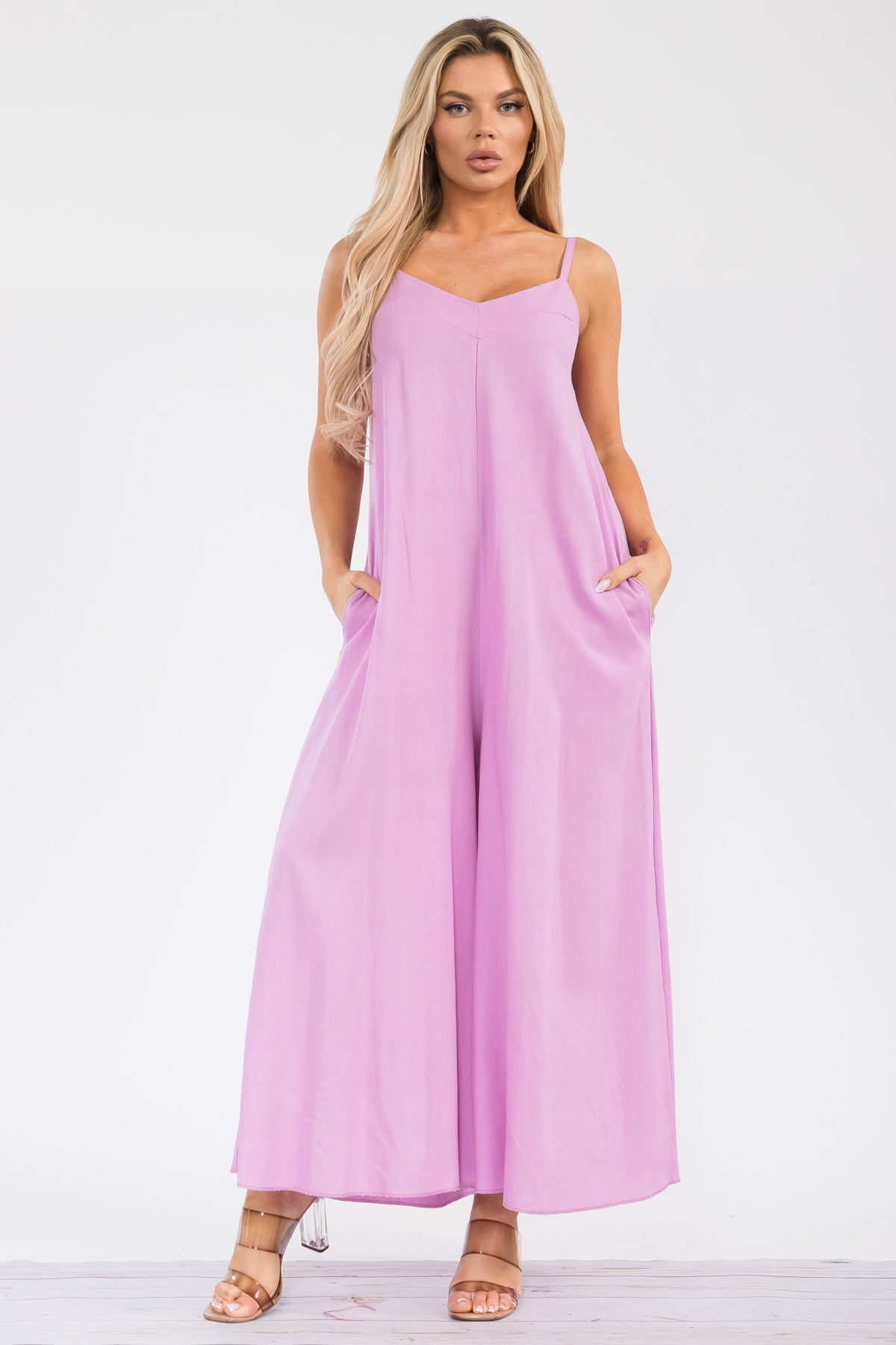 HH756X-S - WIDE LEG SLEEVELESS LINEN JUMPSUIT