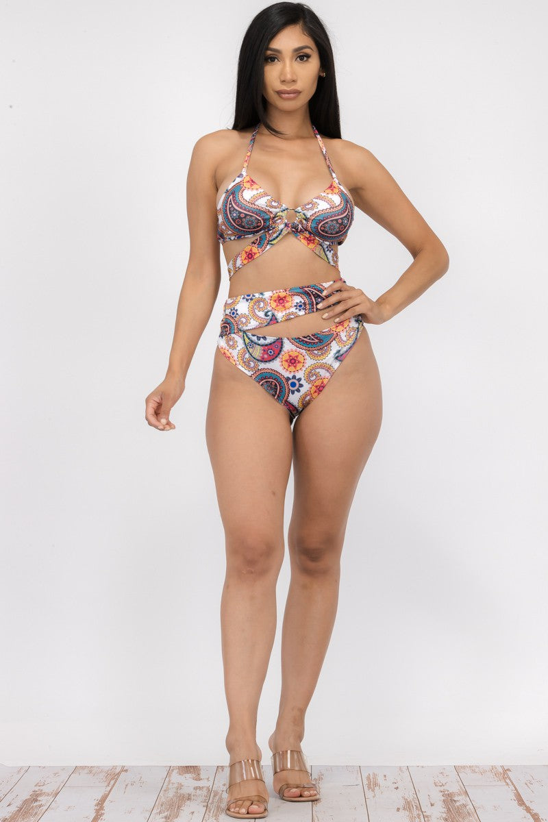 2 uds. CONJUNTO DE BIKINI HALTER ESTAMPADO PAISLEY