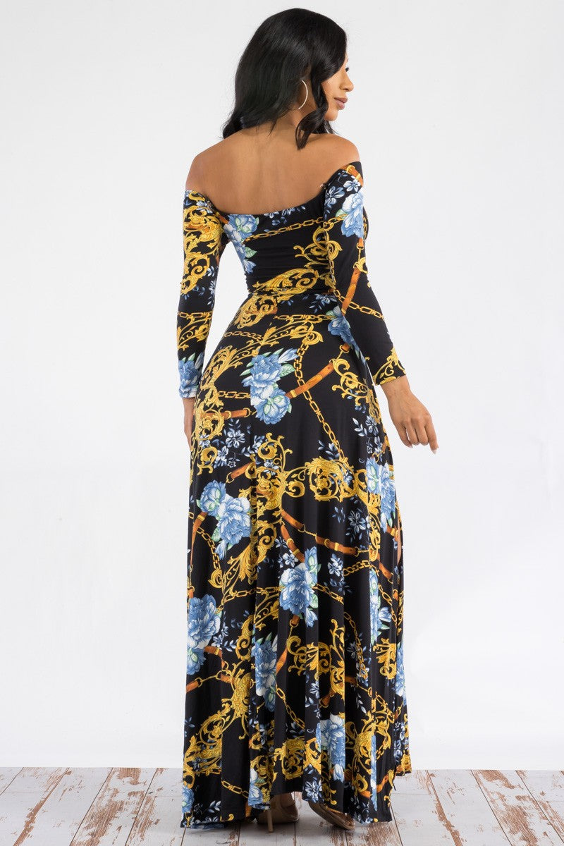 OFF THE SHOULDER LONG SLEEVE MAXI DRESS