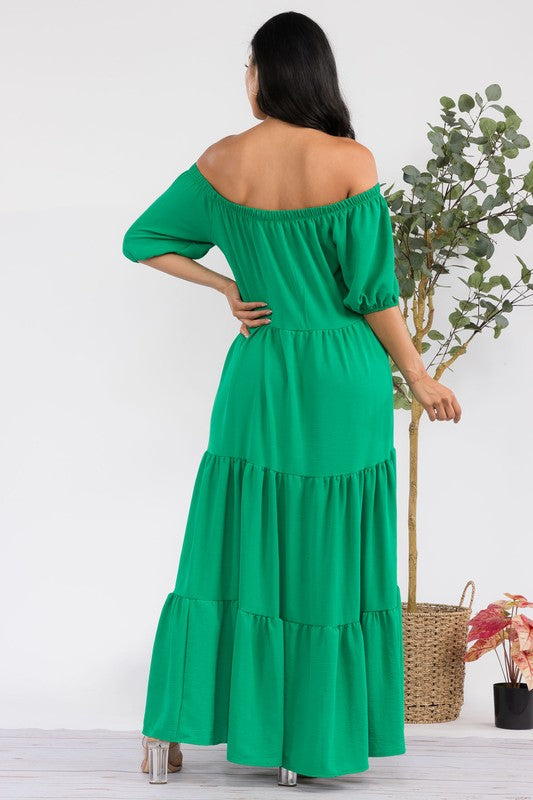 HH722R-S1 OFF SHOULDER TIERED MAXI DRESS